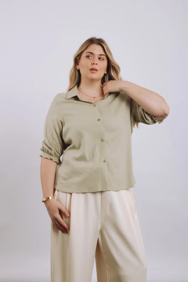 InicioShopJessyCamisas3940 Camisa Mangas 3-4 Volados Fruncidos