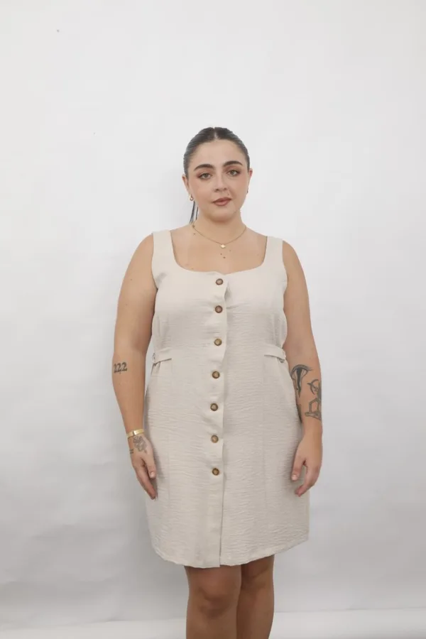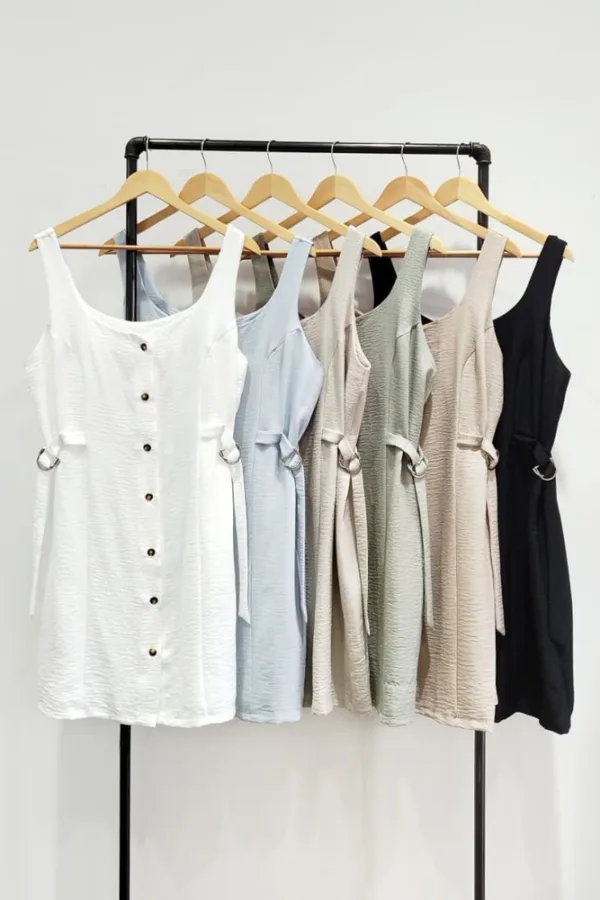 4140 Vestido S-Mangas Hebilla Cintura