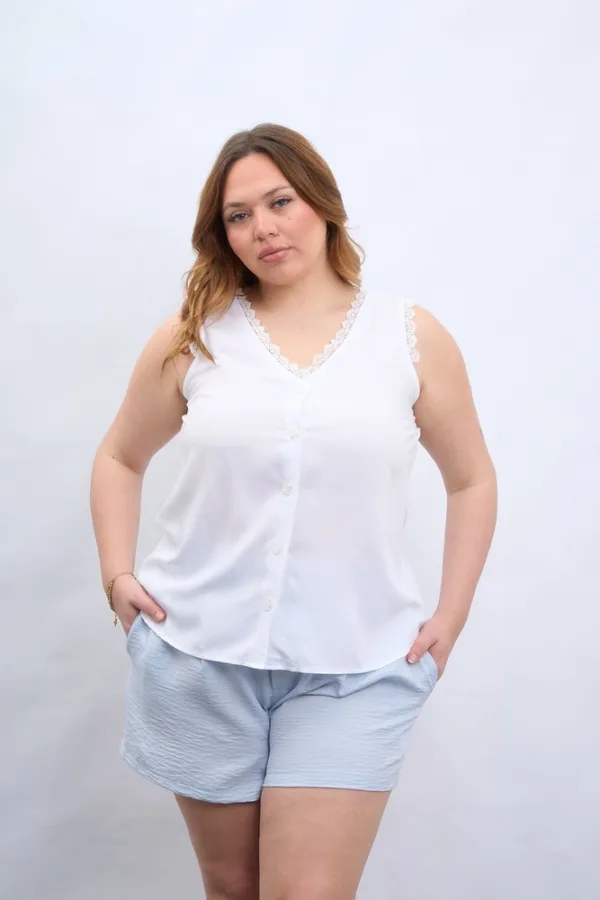 InicioShopJessyCamisas41822 Camisa S-Manga Cuello V Puntilla